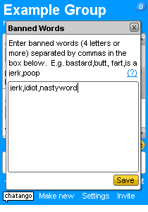 Group owners can ban certain words from a chat. To set the banned words you must be logged in as the group owner. Click here for more information.