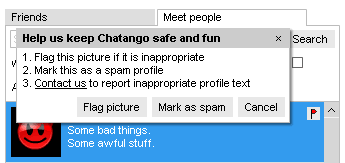 You can also report spam or inappropriate private messages to Chatango. Click on the Report Abuse link.