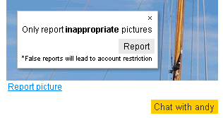 If you find a profile page that has offensive content, you can report the picture on the page by clicking the report picture link below the picture.
